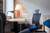 Уютная спальня с большой кроватью и рабочим местом, с просторной гардеробной и выходом на балкон, откуда открывается вид на крыши города. Совмещенный санузел с душевой кабиной. Светлая кухня со встроенной техникой.