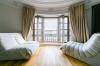 Гостиная: Умиротворенная и успокаивающая зона. Особое место занимает эркер с панорамными окнами и струящимися шторами. Имеется кондиционер и проектор для просмотра фильмов.