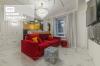 О квартире: Квартира наполнена воздухом и светом благодаря светлой отделке, качественному освещению и большому количеству зеркал. При этом дизайнерские цветовые акценты придают пространству характер и уют.