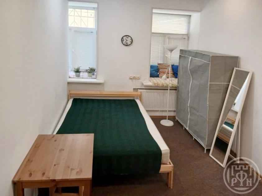 Студия расположена на 1 этаже пятиэтажного дома. Окна выходят во двор. Оснащена необходимой мебелью и техникой: кухонный гарнитур, холодильник, стиральная машина, кровать, стол, шкаф.