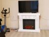 Электроварочная панель, духовой шкаф, микроволновая печь, двухкамерный холодильник, посудомойка, полный набор посуды, телевизор, электрический камин с функцией обогрева, большой шкаф-купе, комод, велотренажер, вместительная прихожая с выдвижными ящиками и стиральная машина.
