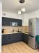 В кухне-гостиной установлен встроенный гарнитур. Из необходимого имеется: двухкамерный холодильник, чайник, микроволновка, посуда, столовые приборы.