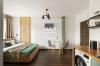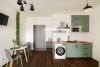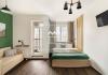 ЧТО ВАС ЖДЁТ:Уютная зона для сна: двуспальная кровать Queen size (160?200) с ортопедическим матрасом и плотные шторы — обеспечат качественный сон. Просторная гостиная зона с раскладным диваном. Полноценная мини-кухня: плита, микроволновая печь, мини-холодильник, электрочайник и посуда. Санузел: душ, стиральная машина, фен, а также базовые средства личной гигиены. Высокоскоростной Wi-Fi (до 100 Мбит/с) — подходит для удалённой работы и онлайн-учёбы. Уютный балкон с летней мебелью и видом на тихий двор.
