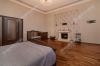 Респектабельная классика: в просторной комнате (32 кв.м.) французский чугунный камин, который можно топить дровами, натуральная лепнина, люстра из богемского хрусталя, большая кровать с матрасом Аскона Барбара, мебель из массива дерева. Окна комнаты выходят на запад, в праздники можно наблюдать салют.