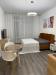 Есть всё необходимое для проживания 1-2 человек. Кухонная зона оборудована гарнитуром, электрическая плита (варочная поверхность), микроволновая печь, электрический чайник, вместительный холодильник.
