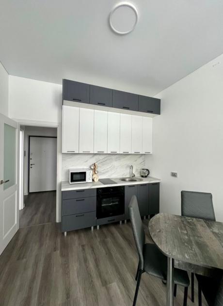 Ремонт выполнен в современном стиле, вся мебель и техника — новые. Квартира полностью укомплектована для комфортного проживания: есть вся необходимая мебель в комнате и на кухне, холодильник, микроволновая печь, стиральная машина. Имеется застекленная лоджия.