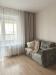 B кухне-гостиной удoбный раздвижной диван с обивкой из нежного велюра, комод для хранения вещей, телевизор