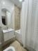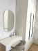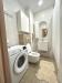 Ванная оформлена в современных тонах, оборудована ванной, стиральной машиной, удобными шкафчиками