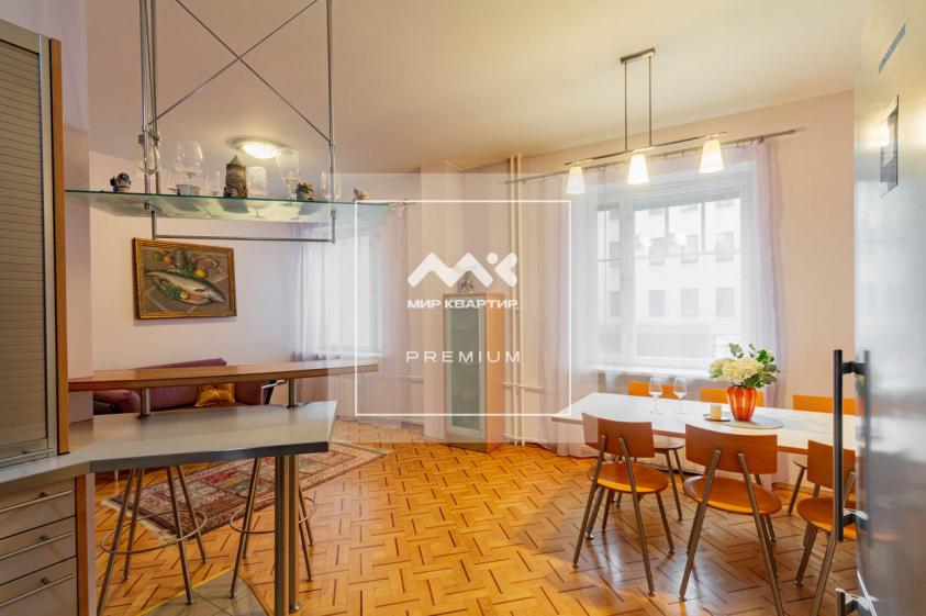 Квартира: 200 кв.м. эргономичной планировки – в центре квартиры просторная кухня-столовая и гостиная, три изолированные спальни, две ванных комнаты (с ванной, сауной и душевой).