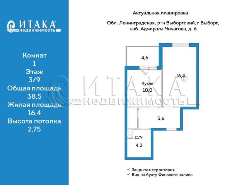 1-91102 Продается 1 комнатная видовая квартира в доме комфорт-класса на берегу бухты Финского залива!