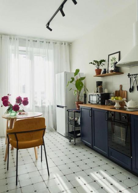 Кухня оснащена мебелью, электрической плитой, духовкой, вытяжкой, холодильником, современной сантехникой.