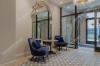 Парадный холл комплекса с дизайнерской отделкой занимает 200 кв метров . Для жителей предусмотрен консьерж - сервис 24 часа в сутки, фитнес-клуб, лобби бар, переговорная с камином для встреч , детская игровая комната . Стильный уютный двор без машин. Выполнено озеленение.