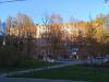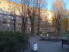 Хоть и первый этаж, но поднят на метр от уровня тротуара и под окнами тихий скверик.