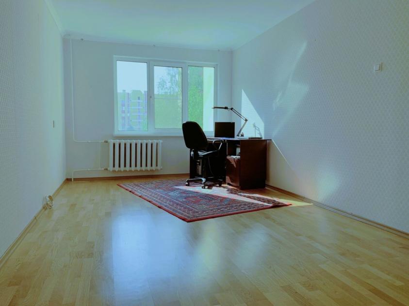 Пол – паркетная финская доска «Karelia», цвет «Дуб», в очень хорошем состоянии, без трещин и сколов.