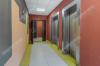 Студия имеет почти квадратную , свободную форму . Застекленная лоджия с видом на просторный двор .