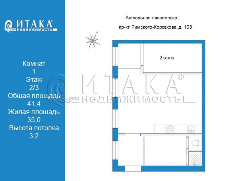 P.S. Всего 41,4 кв.м. (площадь по полу, без учета второго этажа), но благодаря грамотной планировке, высоким потолкам 3,2 м и 4 окнам – это полноценное жилье премиум-класса в золотом треугольнике Петербурга.