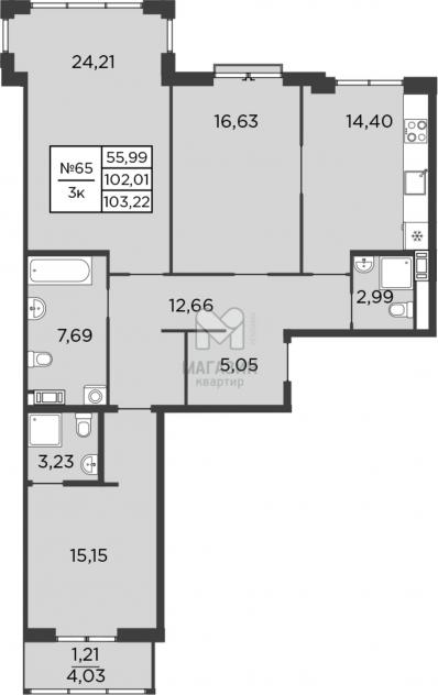 - Общая площадь - 102.01 м2