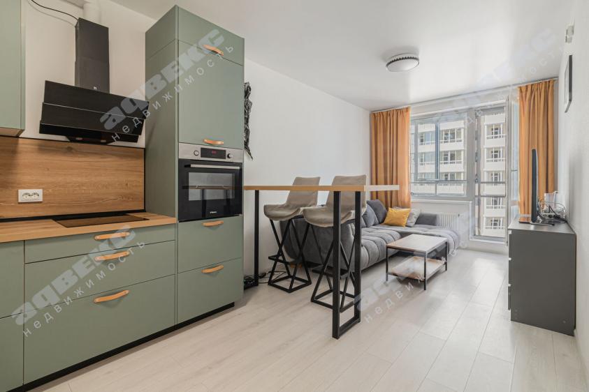 ПЛОЩАДЬ КВАРТИРЫ – общая площадь 47 метров плюс лоджия 5 метров. Дизайн выполнен в скандинавском стиле. Идеальное состояние ремонта. Комната 17 м2 с прекрасным видом на лесопарк и панораму города. Кухня прямоугольной формы 19 м2 с выходом на лоджию - дополнительное пространство для работы и отдыха. Кухонный гарнитур и техника (кроме холодильника) наш подарок покупателю.