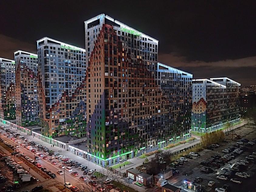 Дворы закрыты для въезда машин. Здесь устроены детские игровые площадки и зоны отдыха. В комплексе предусмотрена большая прогулочная зона с велосипедными и роликовыми дорожками. Свой детский сад. Есть собственный кинотеатр Юность и целая торговая улица. Также есть наземный многоуровневый паркинг.