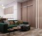 В квартире предусмотрены помещения для взрослых и детей с двумя санузлами, изолированными комнатами, местом для совместного отдыха- совмещенная гостиная-кухня. Есть гардеробная и кладовая. Все помещения очень функциональны, при этом нет лишних деталей.