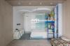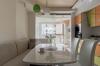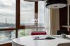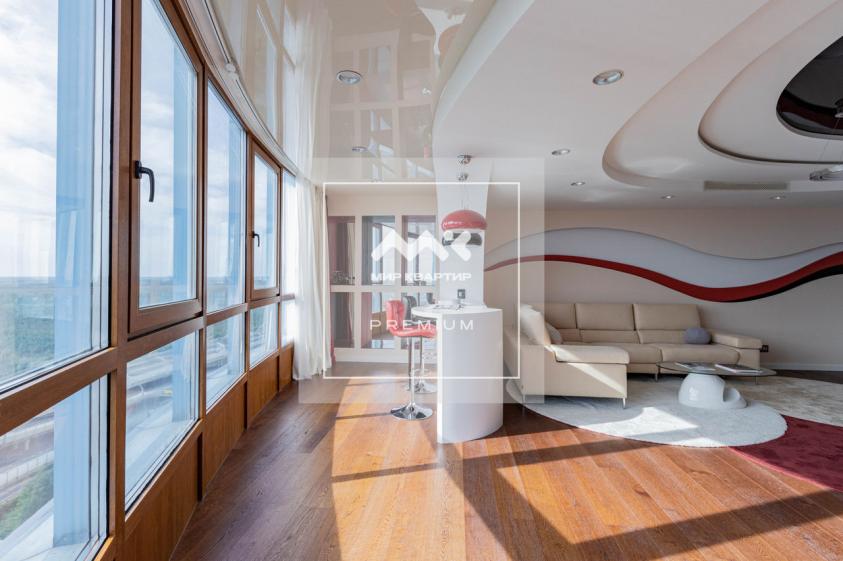 Гостиная 49 м2, 2 просторные спальни, 2 санузла, кухня с лоджией и зоной отдыха, зонированной стеклянной перегородкой с матированием стекла нажатием кнопки-при этом зона отдыха становится приватной. В отделке использованы высококачественные материалы, на полу паркетная доска и натуральная пробка, кухонная техника Bosh (в т.ч. встроенная кофемашина, встроенная микроволновая печь, холодильник Side-by-Side с ледогенератором), установлены система фильрации воды и измельчитель отходов. Сантехника Vileroy&Boch, смесители Grohe.