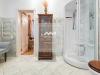 Особое внимание заслуживает интерьер. Вся мебель выполнена из премиальных итальянских материалов: итальянская кухня, техника Miele, а также коллекционные предметы: лампы Тиффани после реставрации, антикварные комоды, стулья, картины, гравюры и вазы, привезённые с аукционов по всему миру.