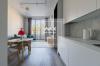 Кухня оснащена всем необходимым: варочная панель с индукцией, микроволновая печь «Samsung», духовой шкаф «Electrolux» и посудомоечная машина с автоматическим открыванием дверцы после завершения программы. Встроенный холодильник «LG» и смеситель с фильтром «Omoikiri Nagano» делают кухню функциональной и стильной. Все шкафы, включая гардеробную, выполнены на заказ.