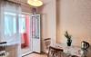 Высокий первый этаж, застекленная лоджия на кухне, в комнате два окна.