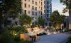 Двор — как парк развлечений: детские площадки с канатной дорогой, зоны для спорта и отдыха с амфитеатром.