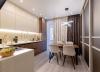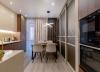 - общее пространство просторной кухни-гостиной при желании может быть разделено раздвижной перегородкой