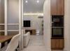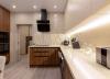 - кухонный гарнитур со всей встроенной техникой (духовка, микроволновка, индукционная варочная панель, посудомойка, холодильник), и литой столешницей из искусственного камня