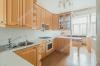 Кухня оборудована гарнитуром, выполненным в классическом стиле.