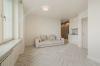 Кухня-гостинная оборудована встроенной техникой (холодильником, плитой, духовым шкафом, посудомоечной машиной). В ней достаточно места, чтобы расположить всю необходимую мебель и принимать гостей.