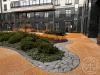 Инженерная и общественная инфраструктура дома ориентирована на комфорт повседневной жизни. Подземный паркинг с удобным выездом на улицу Бакунина экономит время на перемещениях и защищает автомобиль от погоды. Внутренние дворы благоустроены: фонтан, детская площадка, арт-объекты и скамьи формируют спокойные точки притяжения для коротких пауз в течение дня или семейного отдыха. Входные группы и общие пространства поддерживают клубный формат, сохраняя приватность и единый архитектурный язык.