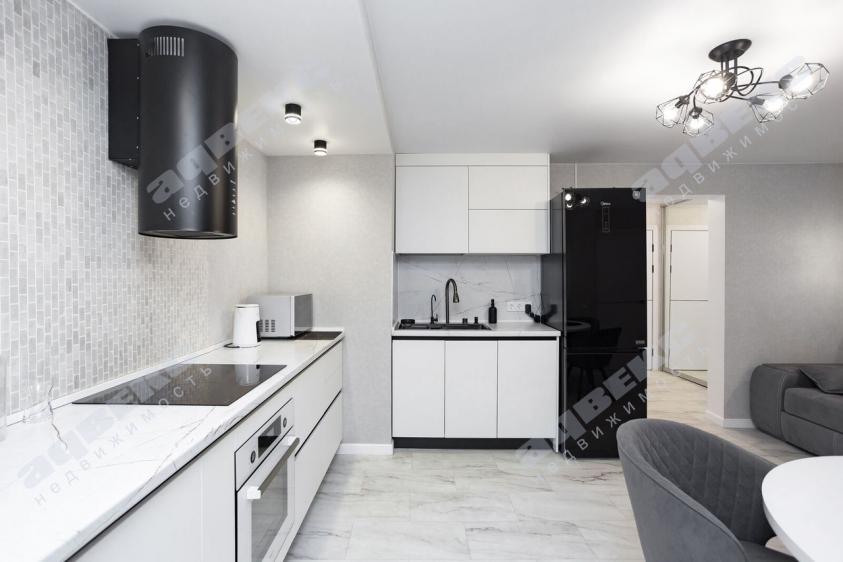 Площадь квартиры 50 кв.метров. Кухня 19.5 кв.метров+ комната 21 кв.метров.