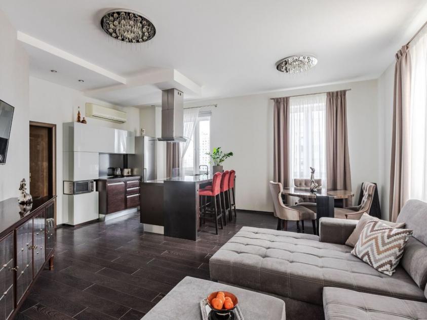 Квартира отличается высоким качеством ремонта и продуманностью каждой детали. Высокие трёхметровые потолки создают ощущение пространства и свободы. Квартира имеет две уютные спальни, большую кухню-гостиную, позволяющую свободно разместить всю семью и гостей одновременно. Современная встроенная кухня оснащена функциональным кухонным островом, удобной посудомоечной машиной, вместительным холодильником, эффективной вытяжкой, стильной варочной поверхностью и удобным духовым шкафом. Это идеальный вариант для тех, кто ценит комфорт, качество и функциональность своего дома. Новым хозяевам остается встроенная кухня со встроенной бытовой техникой! Остальная мебель - обсуждается.