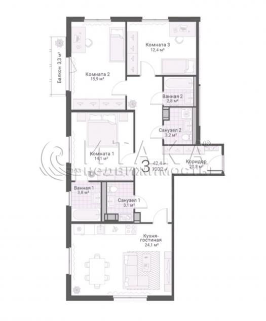Изолированные комнаты и большая кухня - идеальна для жизни семьи с детьми. Два раздельных санузла. Чистовая отделка от застройщика - вам останется только воплотить свои дизайнерские идеи и расставить мебель по вкусу.
