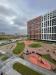 С большими панорамными окнами. Вид из окон на хорошо оборудованный двор.
