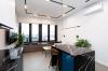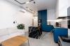 Сердцем квартиры является просторная (21м) кухня-гостиная разделённая на хозяйственную зону и диванную с видом на Неву с петербургским небом. Окно, почти во всю стену, наполняет пространство естественным светом. В кухонный гарнитур встроена бытовая техника. В обеденный остров, из кварцевого агломерата, удобно спрятан винный шкаф.