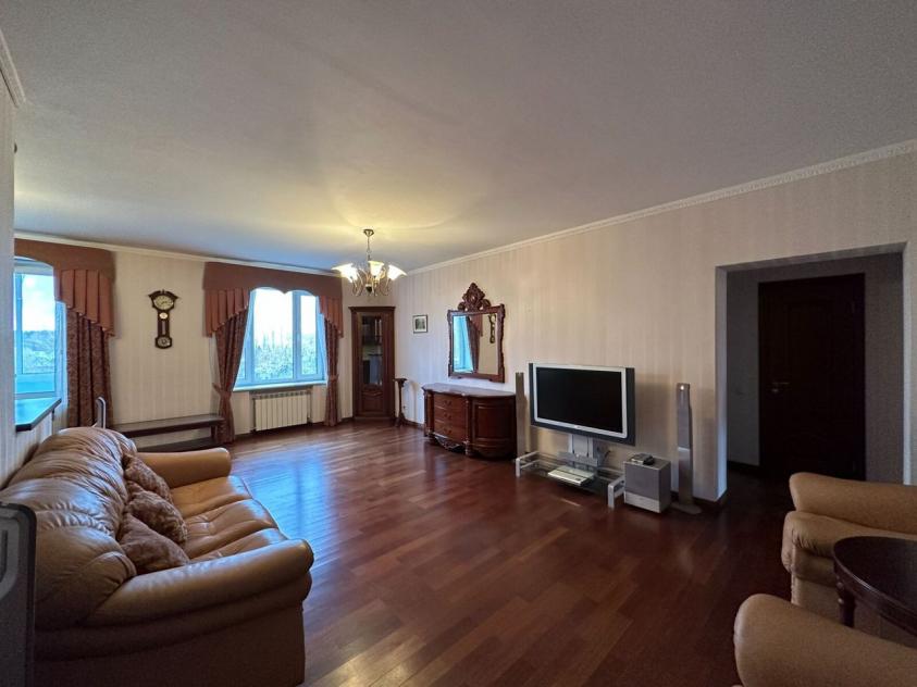 Жильё выполнено с применением качественных материалов и современного евроремонта. В отделке использованы паркет из массива красного дерева и итальянский кухонный гарнитур из массива ореха. В квартире сохранена мебель в комнатах и на кухне, включая мягкую мебель из натуральной кожи. Установлена электрическая плита. Квартира продается с полной комплектацией мебели и техники.