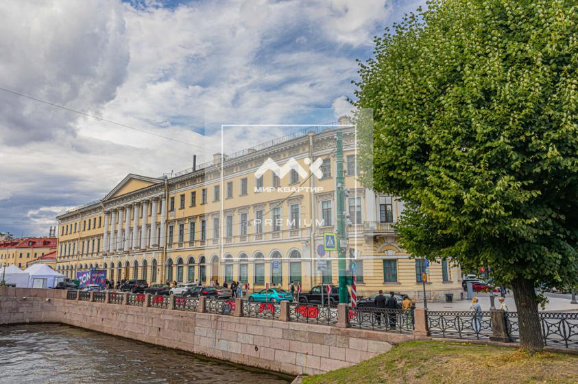 Это здание считается одним из самых интересных памятников архитектуры и привлекает внимание благородной отделкой фасадов, украшенных портиками из восьми полуколонн композитного ордера и лепным фризом. Живописный силуэт Михайловского замка, вековые деревья Летнего и Михайловского садов, тихая поэтичная Мойка делают это место одним из красивейших мест в городе. Квартира 151 кв.м. расположена на последнем этаже пятиэтажного дома. Окна квартиры смотрят в тихий двор.