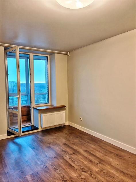 В комнате застеклённый стеклопакетами и утеплённый балкон с прекрасным видом на парк Муринского ручья. Сама квартира двухсторонняя, в жаркую погоду легко проветривается. Площадка на этаже закрывается, можно хранить коляски и велосипеды, все соседи очень адекватные и дружные. Часть общего коридора, прилегающая к квартире, отделена дополнительной дверью и используется как прихожая.