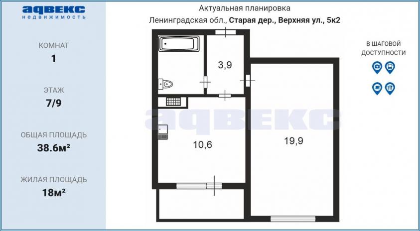 В продаже светлая и теплая однокомнатная квартира с отличными видовыми характеристиками.