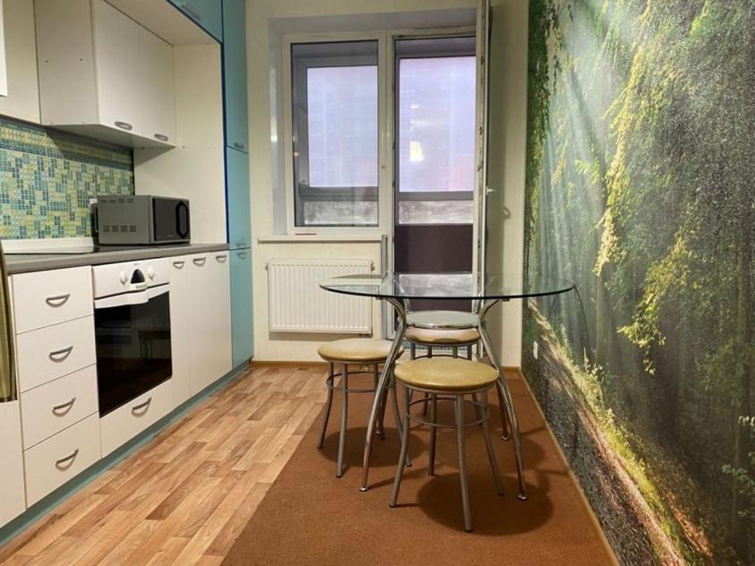 Современная встроенная кухня, оборудованная всей необходимой бытовой техникой остается новому владельцу.