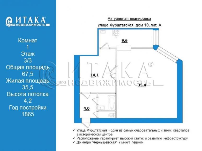 1-92566 Готовы стать владельцем не просто квадратных метров, а частицы настоящего Петербурга? Тогда эта большая однокомнатная квартира с высокими потолками - для вас!