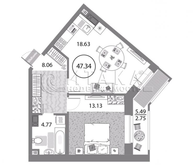 Однокомнатная квартира с удобной и функциональной планировкой: