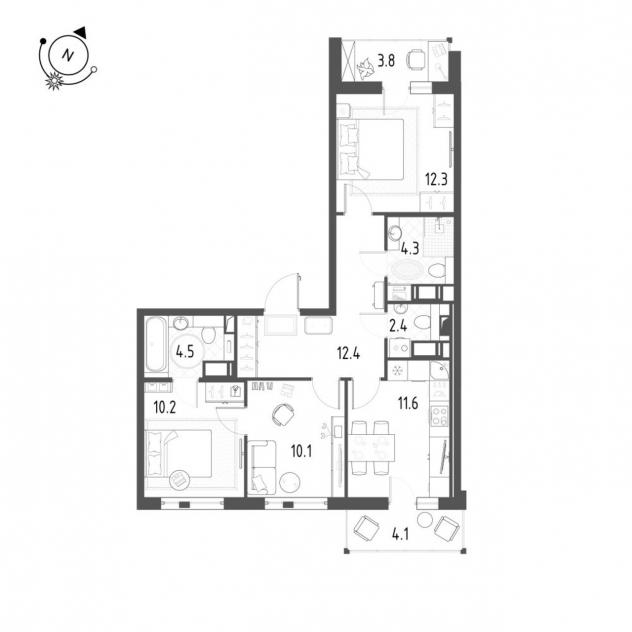 Комнаты 10,2м2. +10,1-+ 12,3 м2.