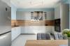 Использовано современное решение для отопления квартиры в виде внутрипольных конвекторов, что помимо эффективного обогрева помещения добавляет интерьеру эстетичности