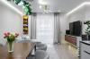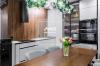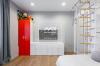 Изюминка этой квартиры в том, что здесь есть как точка притяжения - место, где семья может собраться и поделиться важным, так и 3 отдельные спальни, где каждый может уединиться. Кухня-гостиная имеет выход на лоджию, где оборудовано дополнительное место хранения и встроен еще один холодильник.