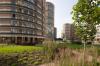 Вентилируемые фасады из керамогранита выполнены в темных, светлых и ярких тонах — каждый тип дома оформлен в индивидуальном стиле. Высотность домов снижается по мере приближения к центру: квартал устроен так, чтобы закрыть внутреннее пространство от шума города и при этом сохранить хорошую освещенность домов.